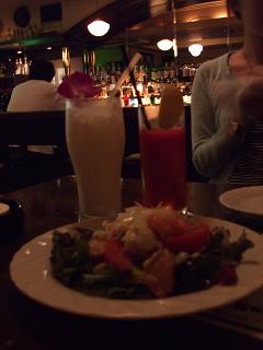 2杯目。わたしがピナコラーダ(左。サウンドスケジュールというバンドの曲名に『さらばピニャコラーダ』というのがある)相方はブラディ・メアリ(右)。